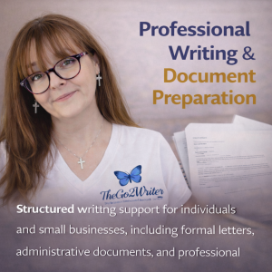 Structured writing support for individuals and small businesses, including formal letters, administrative documents, and professional document refinement with clarity and strength.